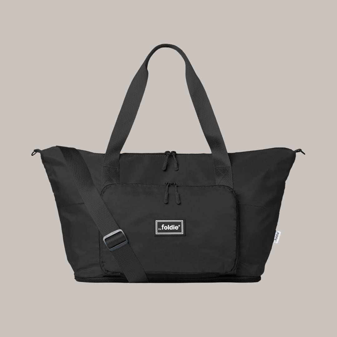 - The Foldie® Travel Bag (40L): Packs 3–5 outfits, shoes, tech, and more—then folds flat when not in use